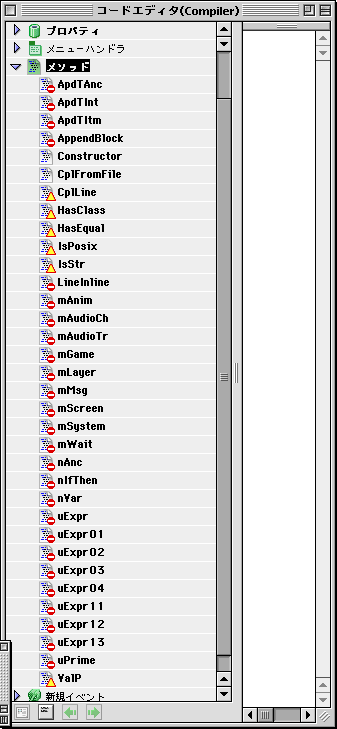 REALbasicのマウスイベントを、Famous Writerで扱いやすいメソッドに振り分けるところまでで、まだメソッドの中身は空です。